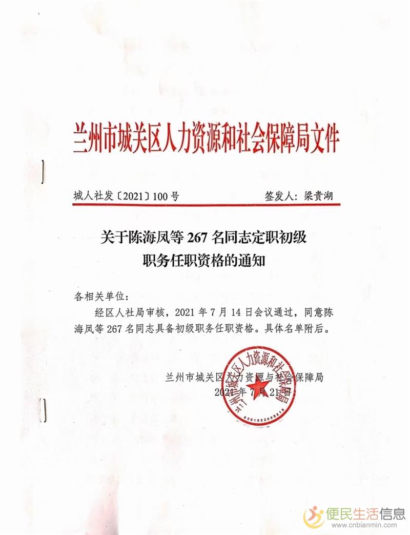 甘肃省人社厅,档案齐全,国家职称联网查询,初级(助理级)中级工程师职称评审
