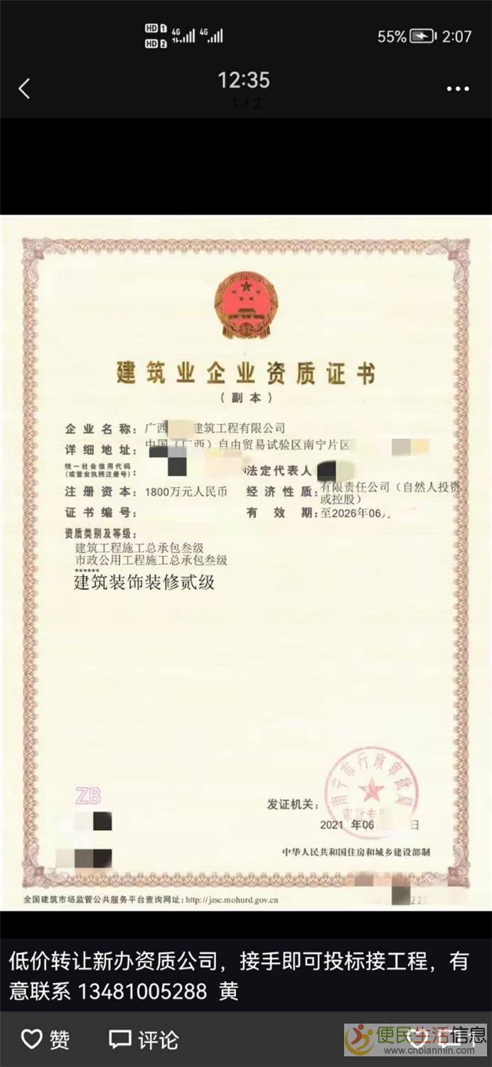 转让新办劳务 建筑 市政总包资质,接手可马上投标接工程 有需要联系 黄 13481005288微信同号...